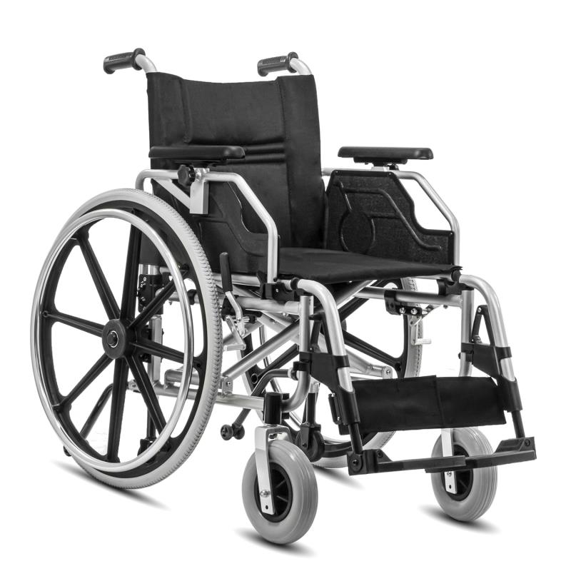- Premium folding wheelchair with flip up type desk jet PU armrests for easy transfer to/from bed.