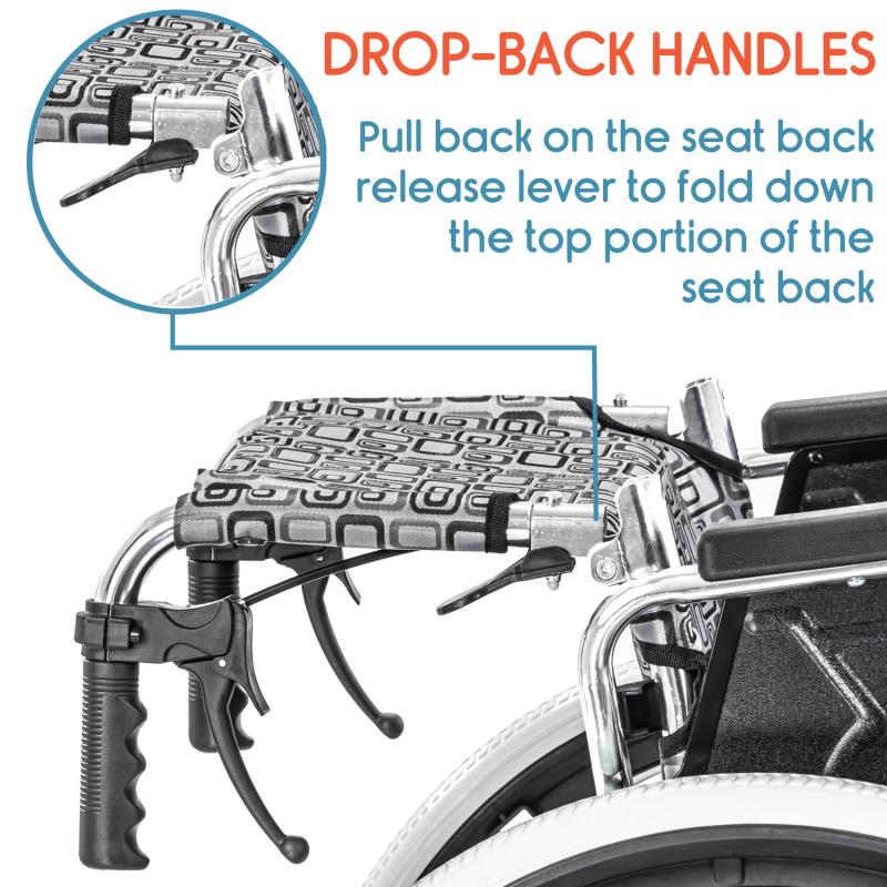 - Light weight, Aluminum frame with drop back handle to make it more compact while folded.