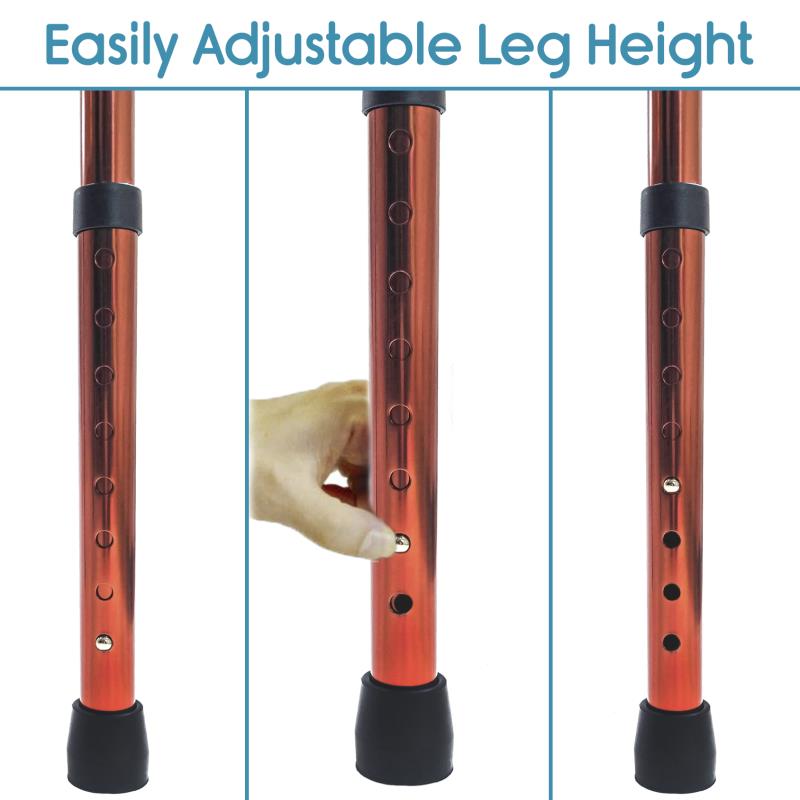 FOLDING: Easy push-button mechanisms may be operated by fingers, palms or side of hand. Foldable for storage and transportation.