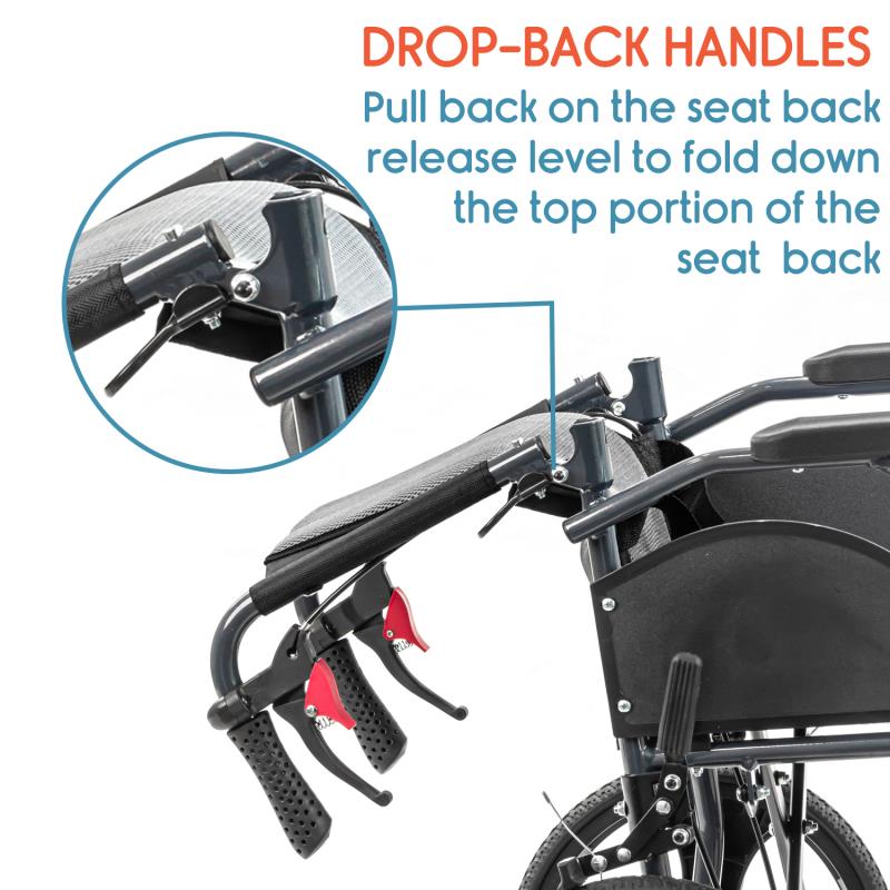 - It comes with drop back handle to make it more compact while folded. it is provided with Hand brakes and rear wheel locks for extra safety.