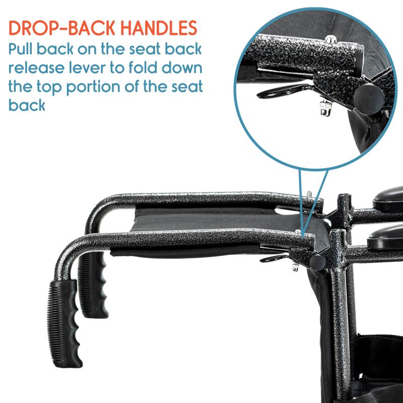 - Drop back handle reduces its height in the folded condition, making it more compact and easier to transport.