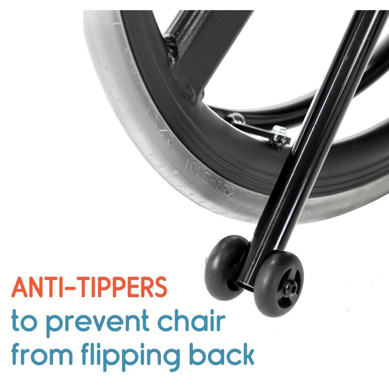 The Active wheelchair is for people leading an active life. The strong yet ultra-light Aircraft grade Aluminum frame with a shorter wheelbase makes it more agile and maneuverable. It comes in two convenient seat sizes.