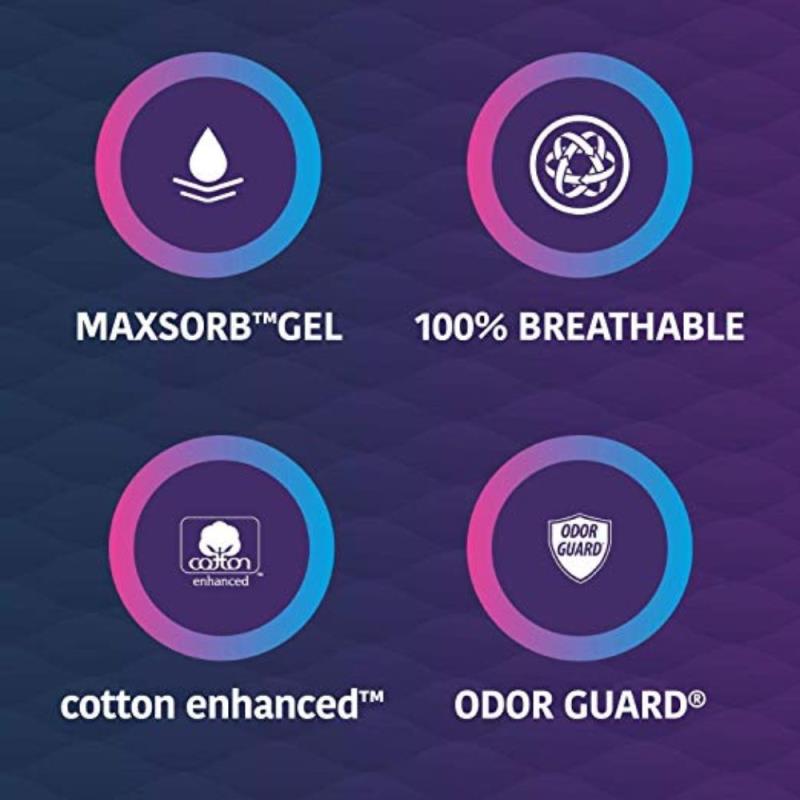 - MaxSorb™ Gel - Technology that quickly locks up wetness to keep wearers feeling dry and comfortable.